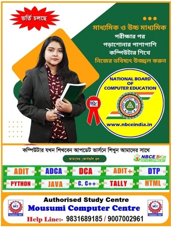Mousumi Computer Centre, our mission is to provide high-quality computer training that equips students with essential skills for the digital age. We aim to create a supportive learning environment that fosters growth and innovation in South Kolkata.